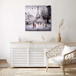 Wanduhr - Glasuhr - Ein Blick auf den Eiffelturm in einer monochromen Umgebung mit Farbakzenten - 30x30cm - Pariser Spaziergang - Moderne Wanddekoration für Wohnzimmer und Schlafzimmer ARTTOR
