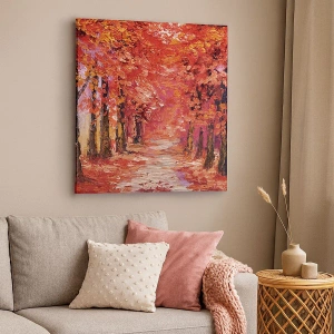 Bild auf Leinwand - Leinwandbild - Eine malerische Gasse in herbstlichen Farben im impressionistischen Stil - 50x70cm - Herbstlicher Eindruck - Moderne Wanddekoration für Wohnzimmer und Schlafzimmer ARTTOR