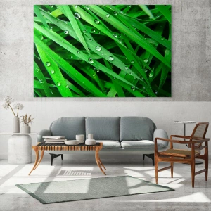 Wandbild – Play Green – Grüne Grashalme mit Tautropfen