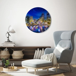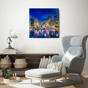 Wanduhr - Glasuhr - Nachtpanorama der Stadt mit auf dem Wasser reflektierten Lichtern - 30x30cm - Metropolis bei Regenbogennacht - Moderne Wanddekoration für Wohnzimmer und Schlafzimmer ARTTOR