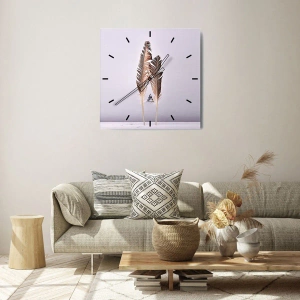 Wanduhr - Glasuhr - Zarte Federn auf hellem Untergrund im minimalistischen Stil - 30x30cm - Gegen das Nichts - Moderne Wanddekoration für Wohnzimmer und Schlafzimmer ARTTOR