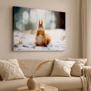 Bild auf Leinwand - Leinwandbild - Ein Eichhörnchen in einer Winterlandschaft - 50x70cm - Wo schaust du hin? - Moderne Wanddekoration für Wohnzimmer und Schlafzimmer ARTTOR