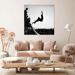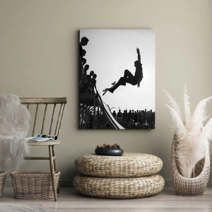 Bild auf Leinwand - Leinwandbild - Schwarz-weiße Skateboardszene auf einer Rampe - 50x70cm - Helden und Zuschauer - Moderne Wanddekoration für Wohnzimmer und Schlafzimmer ARTTOR