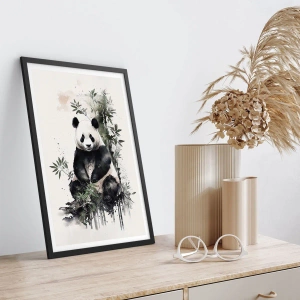 Poster in einem schwarzem Rahmen - Aquarell Panda umgeben von Bambusblättern - 50x70cm - Grüße aus China - Moderne Wanddekoration für Wohnzimmer und Schlafzimmer ARTTOR