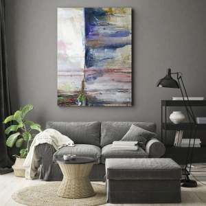 Die Leinwand wird über den Rahmen gespannt. Die Seiten und Kanten werden gedruckt, um das Bild fortzusetzen. Das Bild ist fertig zum Aufhängen an der Wand. Jedes Produkt hat einen am Rahmen befestigten Anhänger und ein Montageset (Schraube + Stift).