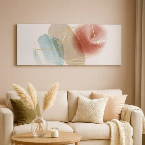 Die Leinwand wird über den Rahmen gespannt. Die Seiten und Kanten werden gedruckt, um das Bild fortzusetzen. Das Bild ist fertig zum Aufhängen an der Wand. Jedes Produkt hat einen am Rahmen befestigten Anhänger und ein Montageset (Schraube + Stift).