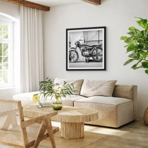 Wählen Sie das Poster „Retro-Motorrad“ als einzigartige Dekoration für Liebhaber von klassischem Design, Automobilen und Schlichtheit. Es ist nicht nur eine Dekoration, sondern auch Ausdruck der Leidenschaft für zeitlosen Stil und Automobilgeschichte.