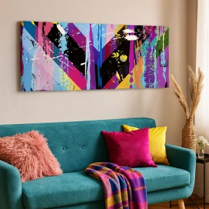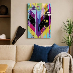 Die Leinwand wird über den Rahmen gespannt. Die Seiten und Kanten werden gedruckt, um das Bild fortzusetzen. Das Bild ist fertig zum Aufhängen an der Wand. Jedes Produkt hat einen am Rahmen befestigten Anhänger und ein Montageset (Schraube + Stift).