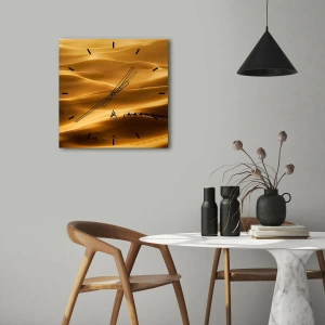 Wanduhr - Glasuhr - Wohnwagen in den Wüstenwellen - 40x40 cm