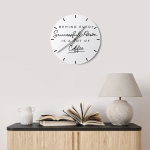 Das Erfolgsgeheimnis ist eine einzigartige Wanduhr, die minimalistisches Design mit einer inspirierenden Botschaft verbindet. Die Uhr ist in einem weißen Farbschema gehalten und trägt die schwarze Aufschrift „Hinter jedem erfolgreichen Menschen steckt viel Kaffee“ mit roten Akzenten auf den Zeigern. Sie passt perfekt in moderne Innenräume und bringt Leichtigkeit und Humor.