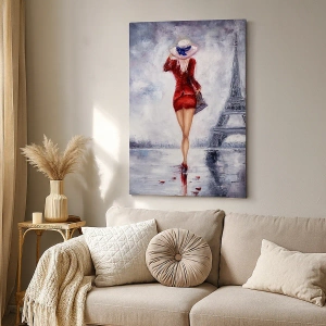 Die Seiten und Kanten werden gedruckt, um das Bild fortzusetzen. Die Leinwand wird über den Rahmen gespannt. Das Bild ist fertig zum Aufhängen an der Wand. Jedes Produkt hat einen am Rahmen befestigten Anhänger und ein Montageset (Schraube + Stift).
