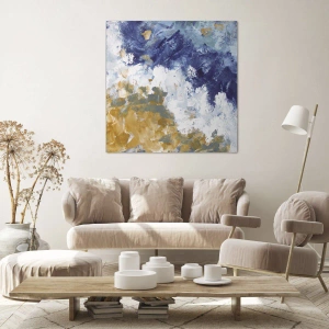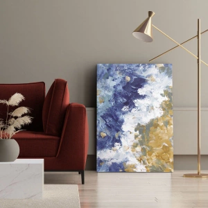 Bild auf Leinwand - Leinwandbild - Abstraktion in Blau-, Weiß- und Goldtönen - 50x70cm - Tanz der Naturelemente - Moderne Wanddekoration für Wohnzimmer und Schlafzimmer ARTTOR