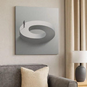 Bild auf Leinwand - Leinwandbild - Ein Mann auf einer grauen, abstrakten Struktur - 70x50cm - Und wie soll man davon klug werden - Moderne Wanddekoration für Wohnzimmer und Schlafzimmer ARTTOR