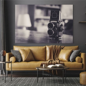 Glasbild - Bild auf glas - Schwarz-Weiß-Fotografie einer antiken Kamera - 50x70cm - Zauber alter Fotografie - Moderne Wanddekoration für Wohnzimmer und Schlafzimmer ARTTOR