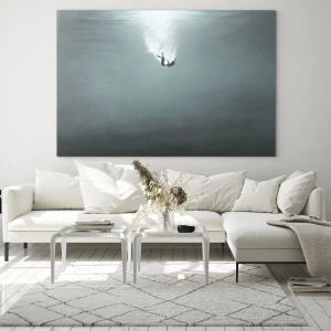 Glasbild - Bild auf glas - Die Silhouette eines Mannes, eingetaucht in die blauen Tiefen des Ozeans - 50x70cm - In den Armen des Ozeans - Moderne Wanddekoration für Wohnzimmer und Schlafzimmer ARTTOR
