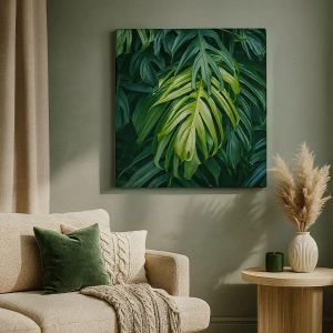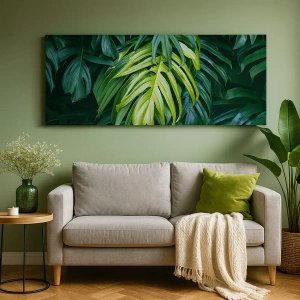 Bild auf Leinwand - Leinwandbild - Grüne Blätter in einem dichten tropischen Arrangement - 100x70cm - Tauchen Sie ein in die Frische - Moderne Wanddekoration für Wohnzimmer und Schlafzimmer ARTTOR