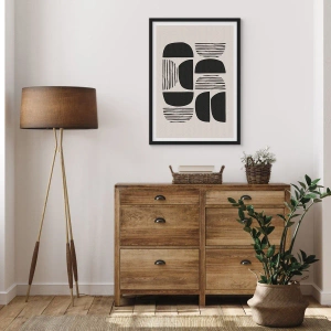 Poster in einem schwarzem Rahmen - Geometrie mit Halbkreisen und Linien in Schwarz auf hellem Hintergrund - 70x50cm - Halbherzige Deals - Moderne Wanddekoration für Wohnzimmer und Schlafzimmer ARTTOR