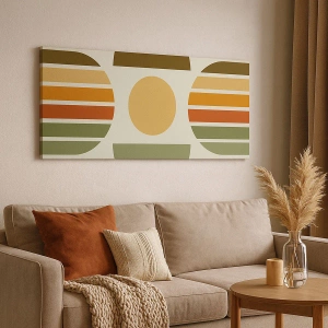 Bild auf Leinwand - Leinwandbild - Geometrische Komposition mit Halbkreisen und Streifen in Erdtönen - 70x50cm - In Erdtönen - Moderne Wanddekoration für Wohnzimmer und Schlafzimmer ARTTOR