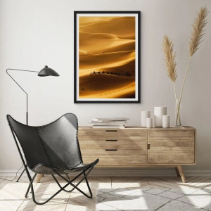 Poster in einem schwarzem Rahmen - Eine Karawane von Kamelen auf den Dünen der Wüste - 50x70cm - Wohnwagen in den Wüstenwellen - Moderne Wanddekoration für Wohnzimmer und Schlafzimmer ARTTOR