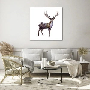 Glasbild - Bild auf glas - Eleganter Aquarellhirsch - 50x70cm - König des nördlichen Waldes - Moderne Wanddekoration für Wohnzimmer und Schlafzimmer ARTTOR