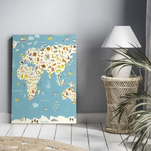 Dieser Leinwanddruck ist eine ausgezeichnete Wahl für Wissenschafts- und Kunstliebhaber. Die Weltkarte mit Tierillustrationen ist eine Dekoration, die Neugier weckt und zur Erkundung der Welt inspiriert, während sie gleichzeitig Harmonie und positive Energie ins Interieur bringt. Diese Dekoration bringt Freude und Eleganz in Innenräume und macht sie ausdrucksvoller und interessanter.