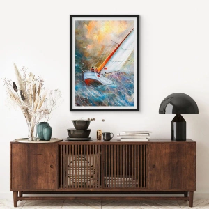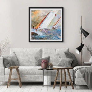 • Segelboot, Raue See, Regatta, Maritim, Landschaften, Reisen, Sport und Hobbys, Kunst, Für das Büro, für das Arbeitszimmer, für das Esszimmer, für das Badezimmer, für den Flur, für das Wohnzimmer, für das Schlafzimmer, Weiß grau, Vertikal
