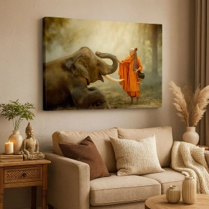 Die Leinwand wird über den Rahmen gespannt. Die Seiten und Kanten werden gedruckt, um das Bild fortzusetzen. Das Bild ist fertig zum Aufhängen an der Wand. Jedes Produkt hat einen am Rahmen befestigten Anhänger und ein Montageset (Schraube + Stift).