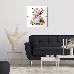 Das Zifferblatt zeigt Kinderspielzeug wie Teddybären, Holzeisenbahnen und bunte Bauklötze und verleiht ihm einen einzigartigen Charakter. Dank ihrer kindgerechten Ästhetik ist sie das perfekte Dekorationselement, das Funktionalität mit kreativem Design verbindet.