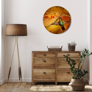Wanduhr - Glasuhr - Kolibri neben einer Blume im warmen Licht - 30x30cm - Ein Lichtbote nach den Maya - Moderne Wanddekoration für Wohnzimmer und Schlafzimmer ARTTOR
