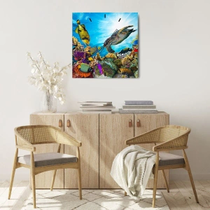 Wanduhr - Glasuhr - Unterwasserwelt mit Korallenriff, Fischen und Meeresschildkröten - 30x30cm - Korallenpromenade - Moderne Wanddekoration für Wohnzimmer, Küche und Schlafzimmer ARTTOR