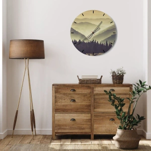 Wanduhr - Glasuhr - Malerische Bergketten im Nebel in warmem Licht - 30x30cm - Hinter den sieben Bergen ... - Moderne Wanddekoration für Wohnzimmer und Schlafzimmer ARTTOR