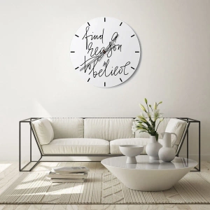 Wanduhr – It's Possible – Minimalistische Aufschrift „Find a Reason to Believe“ auf weißem Hintergrund
