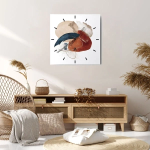 Wanduhr - Glasuhr - Abstrakte Flecken in Beige-, Marineblau- und Terrakottatönen - 30x30cm - Ovale Komposition - Moderne Wanddekoration für Wohnzimmer, Küche und Schlafzimmer ARTTOR