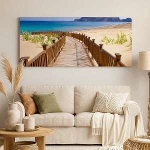 Bild auf Leinwand - Leinwandbild - Holzweg zum Strand mit Meerblick - 50x70cm - Bring mich zu den glücklichen Inseln - Moderne Wanddekoration für Wohnzimmer und Schlafzimmer ARTTOR