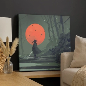 • Dieser Leinwanddruck zeigt einen einsamen Krieger mit einem Schwert vor einem roten Mond. Perfekt für Fans von Fantasy und künstlerischer Dekoration.