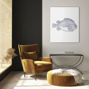 Wandbild – Für ein Naturforscheralbum – Detaillierte Gravur eines Fisches auf weißem Hintergrund im Naturstil