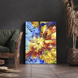 Die Leinwand wird über den Rahmen gespannt. Die Seiten und Kanten werden gedruckt, um das Bild fortzusetzen. Das Bild ist fertig zum Aufhängen an der Wand. Jedes Produkt hat einen am Rahmen befestigten Anhänger und ein Montageset (Schraube + Stift).