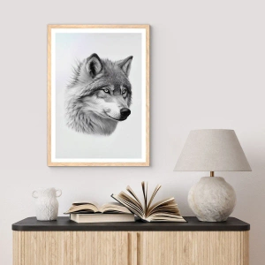 • Wolf, Tier, Skandinavisch, Schwarzweiß, Natur, Tiere, Für das Büro, für das Arbeitszimmer, für das Esszimmer, für den Flur, für das Wohnzimmer, für das Schlafzimmer, Weiß, Grau, Schwarz und Weiß, Horizontal