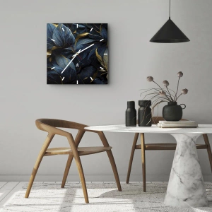 Wanduhr - Glasuhr - Dunkle Blüten mit zartem Golddekor auf den Blütenblättern - 30x30cm - Mit Gold gefüttert - Moderne Wanddekoration für Wohnzimmer, Küche und Schlafzimmer ARTTOR