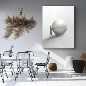 - Dieses Gemälde zeigt eine minimalistische Figur mit einer Kugel vor einem hellen, monochromen Hintergrund. Perfekt für moderne und dezente Innenräume. Der Leinwanddruck misst 70 x 50 cm.