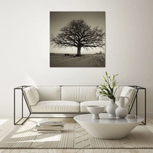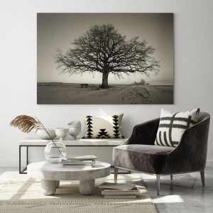 Glasbild - Bild auf glas - Ein einsamer Baum in einer monochromen Landschaft - 70x50cm - Von hier zu Ewigkeit - Moderne Wanddekoration für Wohnzimmer und Schlafzimmer ARTTOR