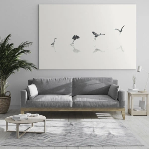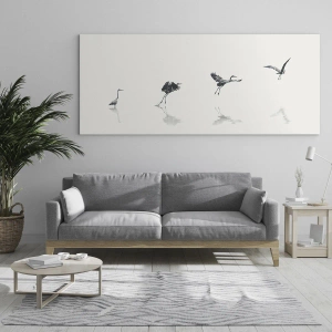 • Vogel, Reiher, Grafik, Schwarz und weiß, Tiere, Für das Büro, für das Arbeitszimmer, für das Esszimmer, für den Flur, für das Wohnzimmer, für das Schlafzimmer, Weiß, Schwarz, Schwarz und Weiß, Panorama