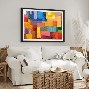 - Dieses Poster zeigt abstrakte, farbenfrohe Rechtecke, die eine harmonische Komposition bilden. Es ist die perfekte Wahl für Innenräume, die Kreativität und Kunst ausstrahlen. Es wird mit einem schwarzen Rahmen geliefert und misst 50 x 70 cm.