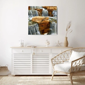 Wanduhr - Glasuhr - Ein Wasserfall, der Steinstufen hinunterfließt - 30x30cm - Treppe zum Himmel - Moderne Wanddekoration für Wohnzimmer und Schlafzimmer ARTTOR