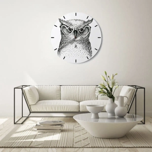 Die Uhr besteht aus 4 mm dickem Sicherheitsglas Glas. Die Herstellungstechnologie der Uhr entspricht der Sicherheitsklasse 2B2 gemäß der Norm PN-EN 12600: 2004, die Stoßfestigkeit garantiert. Die Uhr auf dem Glas ist bereit zu hängen - es hat einen Metallanhänger, einen Anhänger auf der Rückseite der Uhr und einen Schaumstoffabstand, der einen gleichmäßigen Abstand zwischen der Uhr und der Wand reguliert. Die Uhr hat einen geräuschlosen Schwimmmechanismus, der von einer 1,5-V-Batterie betrieben wird - AA-Batterie inbegriffen).