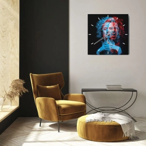 Wanduhr - Glasuhr - 3D-Effekt Frau in blauen und roten Farben - 30x30cm - Alter Ego - Moderne Wanddekoration für Wohnzimmer, Küche und Schlafzimmer ARTTOR