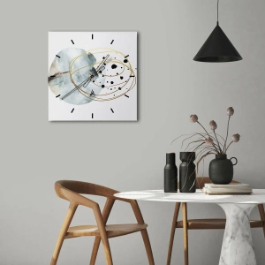 Mit der Wanduhr In the Embraces of Space bringen Sie Modernität, künstlerischen Ausdruck und räumliche Eleganz in Ihr Interieur. Das Format 30 x 30 cm und die subtile Komposition machen die Uhr zu einer einzigartigen Dekoration für jeden modernen Raum.