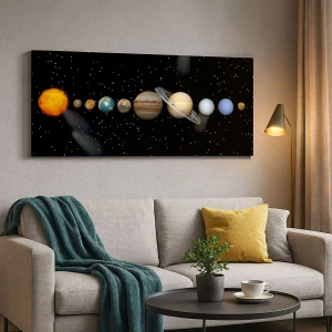 Bild auf Leinwand - Leinwandbild - Das Sonnensystem mit Planeten vor dem Hintergrund der Sterne im Weltraum - 50x70cm - Und die Planeten werden verrückt und toben ... - Moderne Wanddekoration für Wohnzimmer und Schlafzimmer ARTTOR
