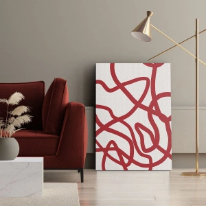 - Dieser Leinwanddruck zeigt rote abstrakte Linien auf weißem Hintergrund. Er verleiht jedem Interieur eine unverwechselbare und moderne Note.