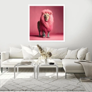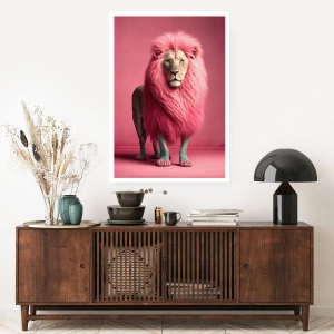 Poster - Ein Löwe mit rosa Mähne auf rosa Hintergrund - 50x70cm - Und du hast keine Angst mehr - Moderne Wanddekoration für Wohnzimmer und Schlafzimmer ARTTOR